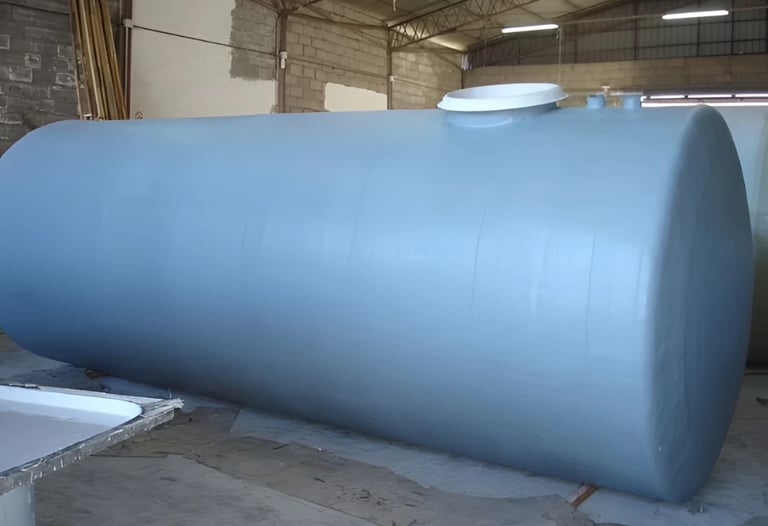 Depósitos destinados al almacenamiento de agua para superficies, cuyos volúmenes varían desde los 1000lts hasta los 100.000lts. Se encuentran fabricados en PRFV (Poliéster Reforzado con Fibra de Vidrio) y poseen forma cilíndrica horizontal con fondos cóncavos cerrados.